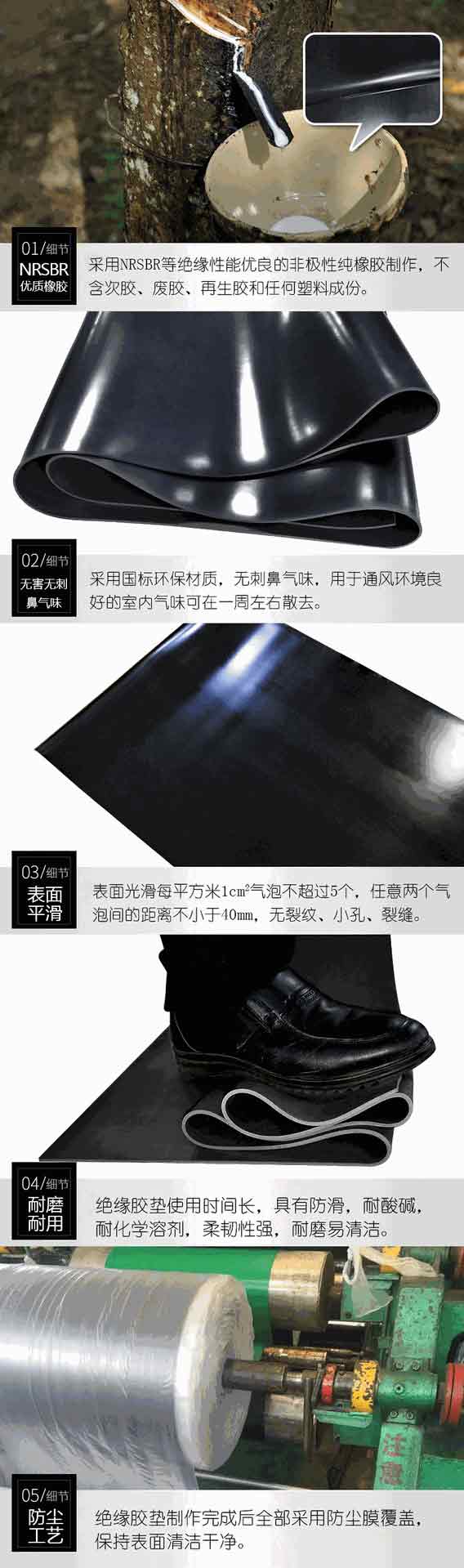 絕緣橡膠墊主要采用膠類絕緣材料制作,用NR,SBR和IIR等絕緣性能優良的非極性橡膠制造。